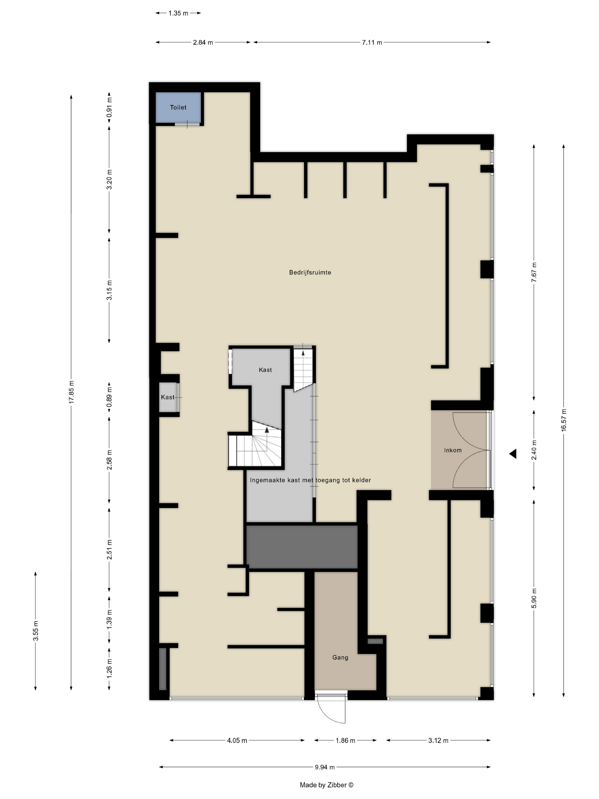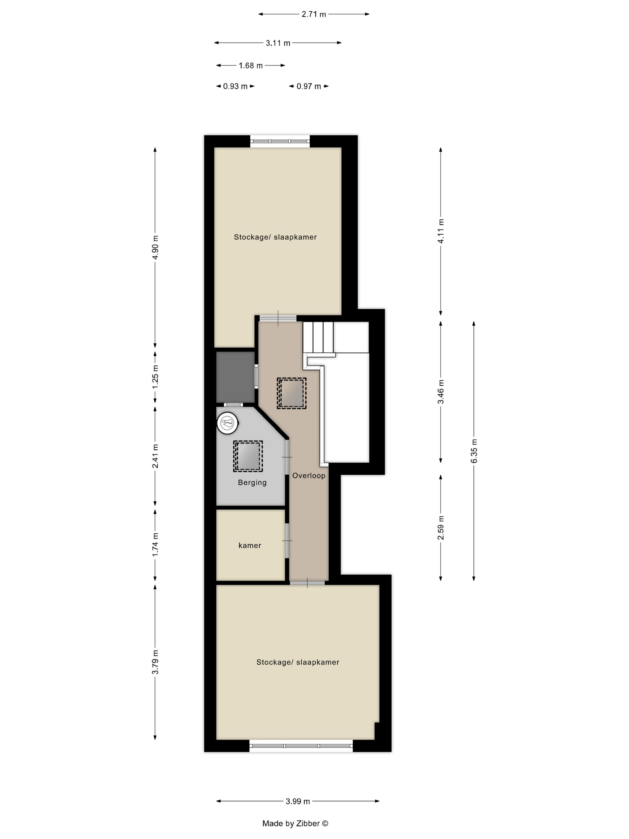 - Via een inpandige trap bereikt u de stockageruimte van 115 m², verdeeld over de 1ste en 2de verdieping.